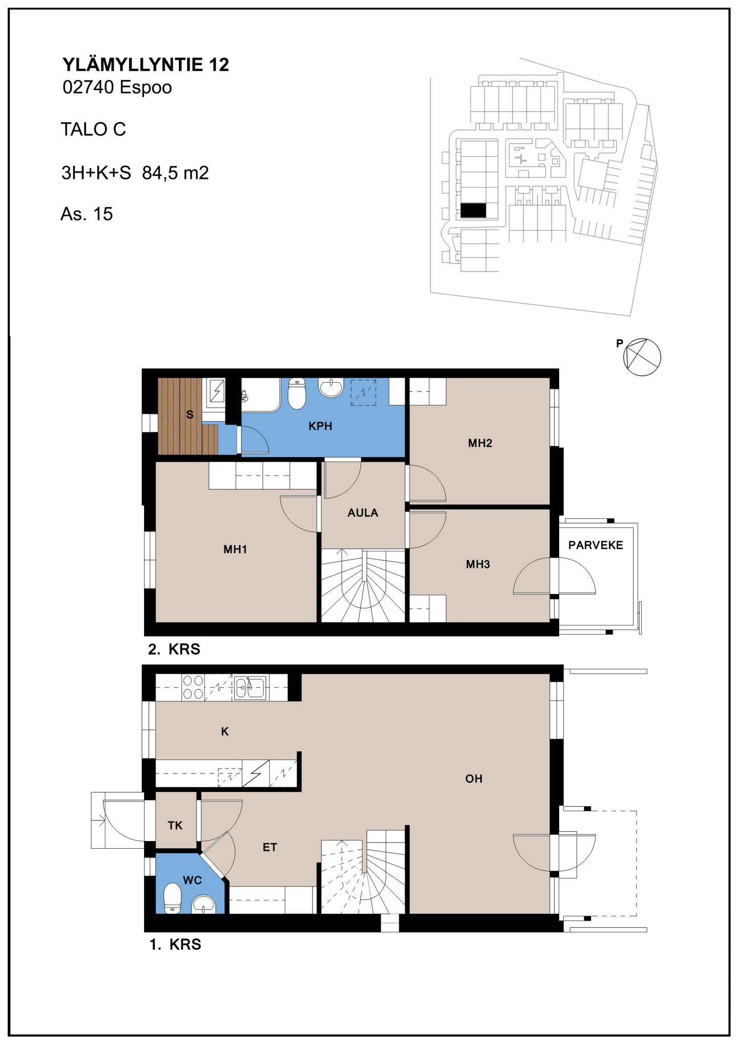 Kohteen asunnot ovat toimivapohjaisia ja kaksitasoisia. Asunnot ovat 75-76,5 m² kolmioita sekä yli 80 m² neliöitä. Kaikissa asunnoissa on runsaasti säilytystilaa ja oma vehreä piha sekä sauna.