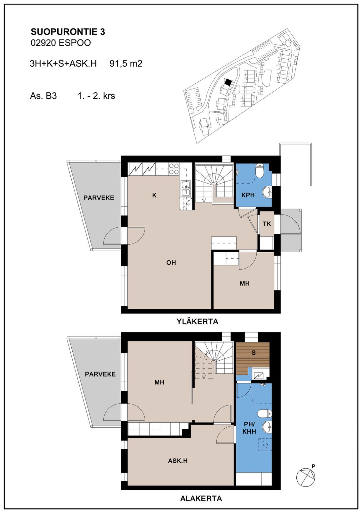 | Huoneistotyyppi | 3H+KK+ASK+S |