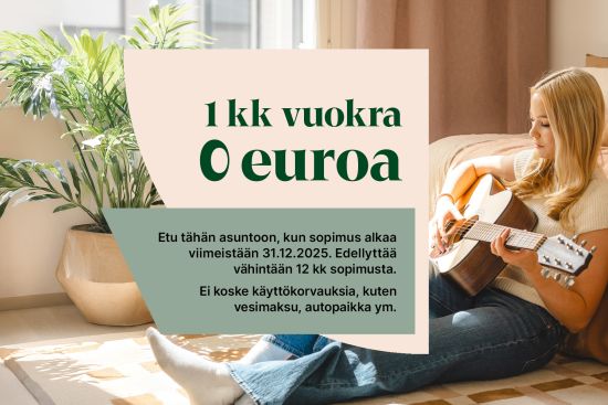 Toistaiseksi voimassa oleva sopimus, kuitenkin vähintään 12 kk. Kohde ja asunnot ovat savuttomia koko kiinteistön alueella. Asuntoihin ovat lemmikit tervetulleita.