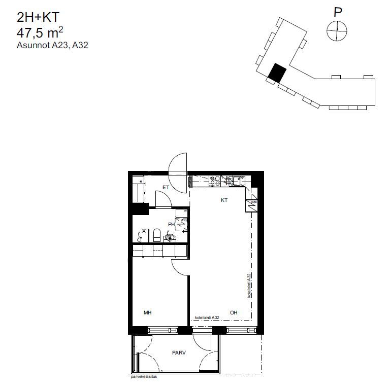 | Huoneistotyyppi | 2H+KT |