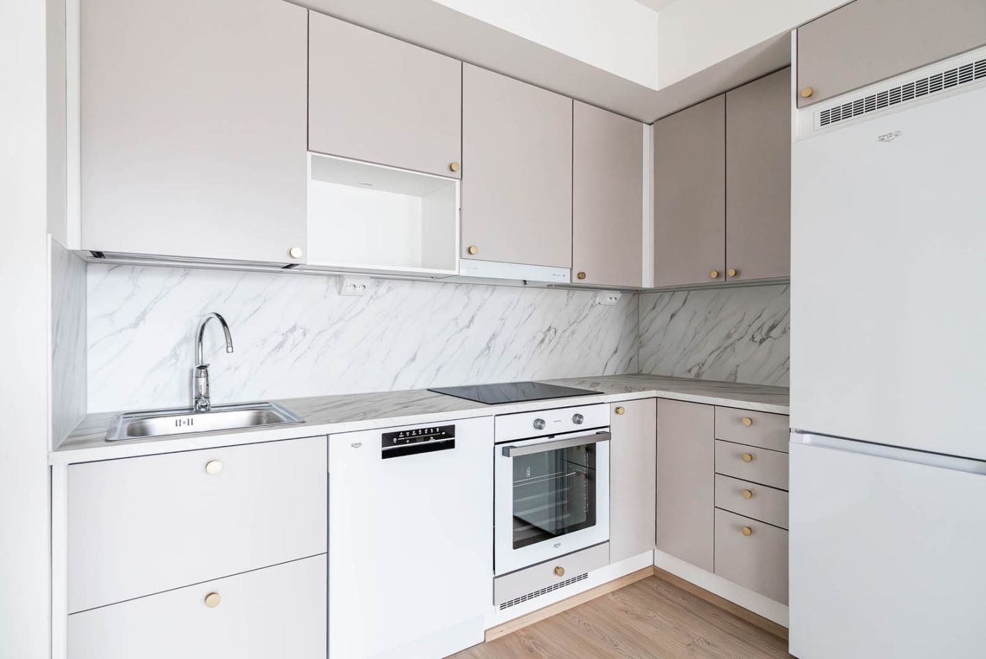 Valoisat ja toimivapohjaiset kodit on suunniteltu huolella, ja ne on helppo sisustaa oman tyylin mukaisesti. Suurista ikkunoista luonnonvalo pääsee kauniisti sisään. Avara keittiön ja olohuoneen yhdistelmä tuo koteihin tilan tuntua ja kutsuu viihtymään. Käytännöllisten keittotilojen laadukkaat ja kauniit pintamateriaalit lisäävät arkeen ripauksen luksusta. Kaikissa asunnoissa on laadukkaat varusteet, kuten induktioliesi, erillisuuni ja astianpesukone.