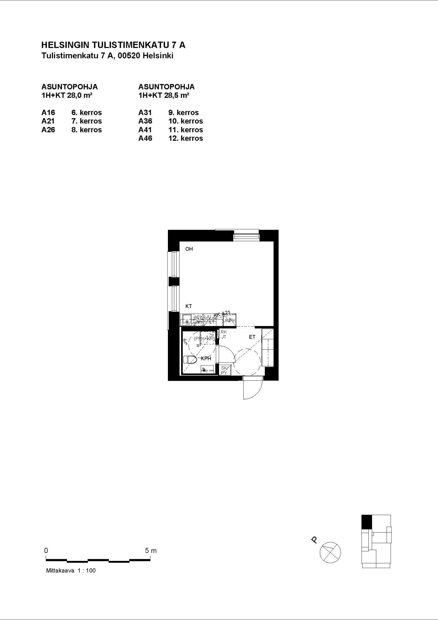28 m2 kompakteista yksiöistä aina 86,5 m2 perheasuntoon.