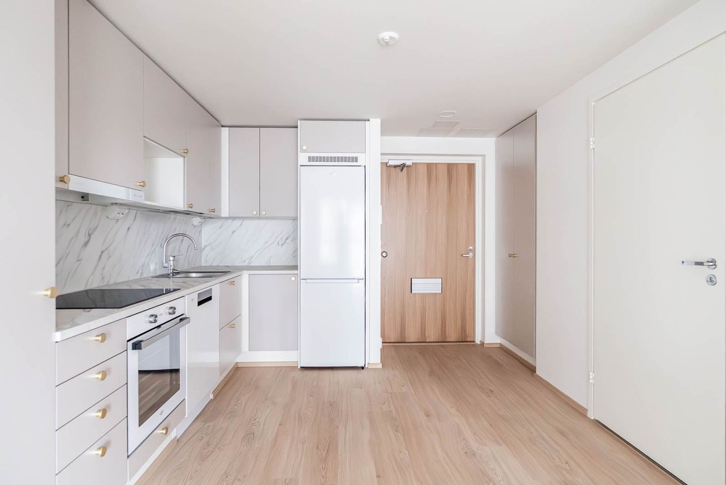 Valoisat ja toimivapohjaiset kodit on suunniteltu huolella, ja ne on helppo sisustaa oman tyylin mukaisesti. Suurista ikkunoista luonnonvalo pääsee kauniisti sisään. Avara keittiön ja olohuoneen yhdistelmä tuo koteihin tilan tuntua ja kutsuu viihtymään. Käytännöllisten keittotilojen laadukkaat ja kauniit pintamateriaalit lisäävät arkeen ripauksen luksusta. Kaikissa asunnoissa on laadukkaat varusteet, kuten induktioliesi, erillisuuni ja astianpesukone.