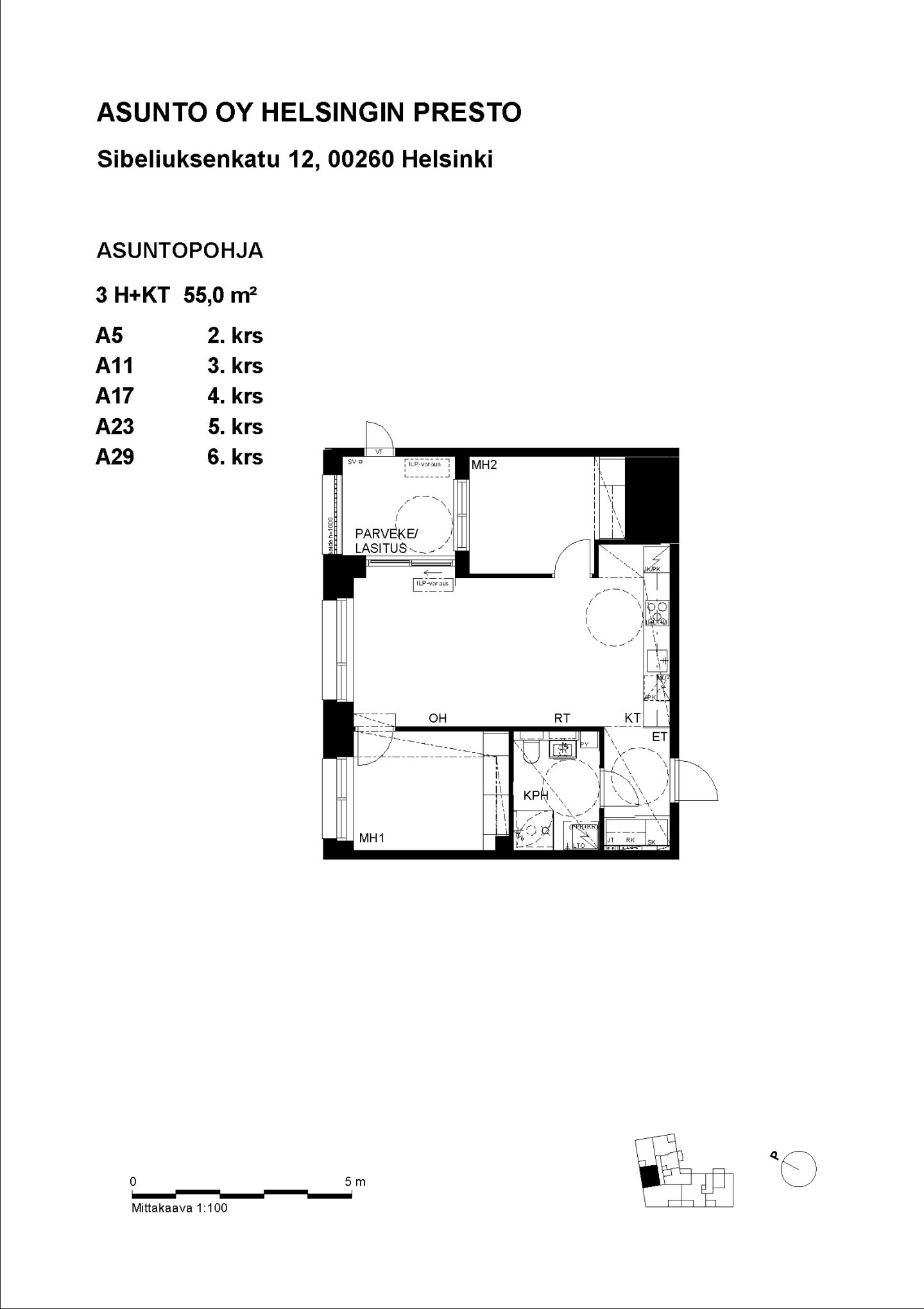 | Asuintilojen pinta-ala | 55,0 m² |