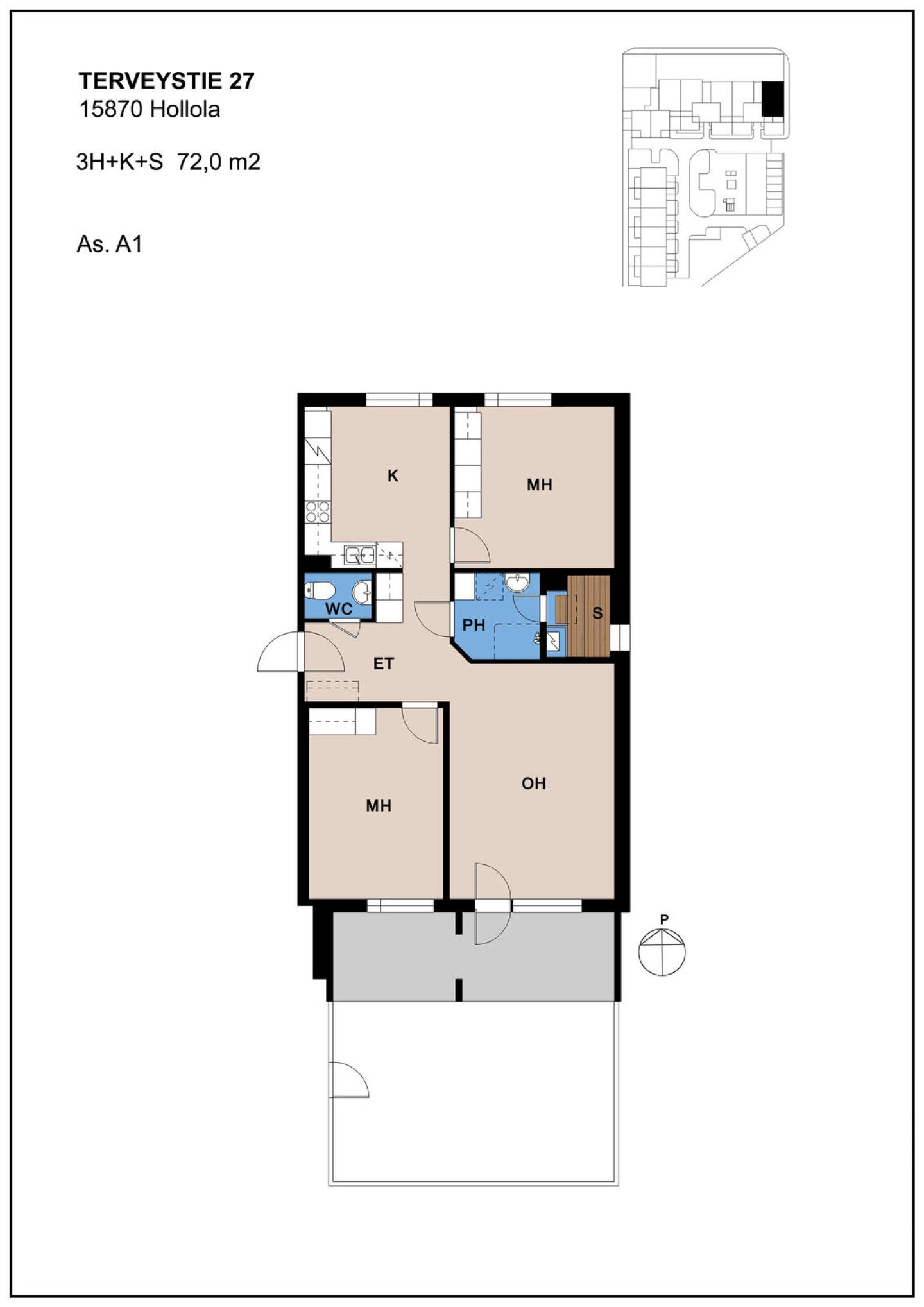 | Huoneistotyyppi | 3H+K+S |