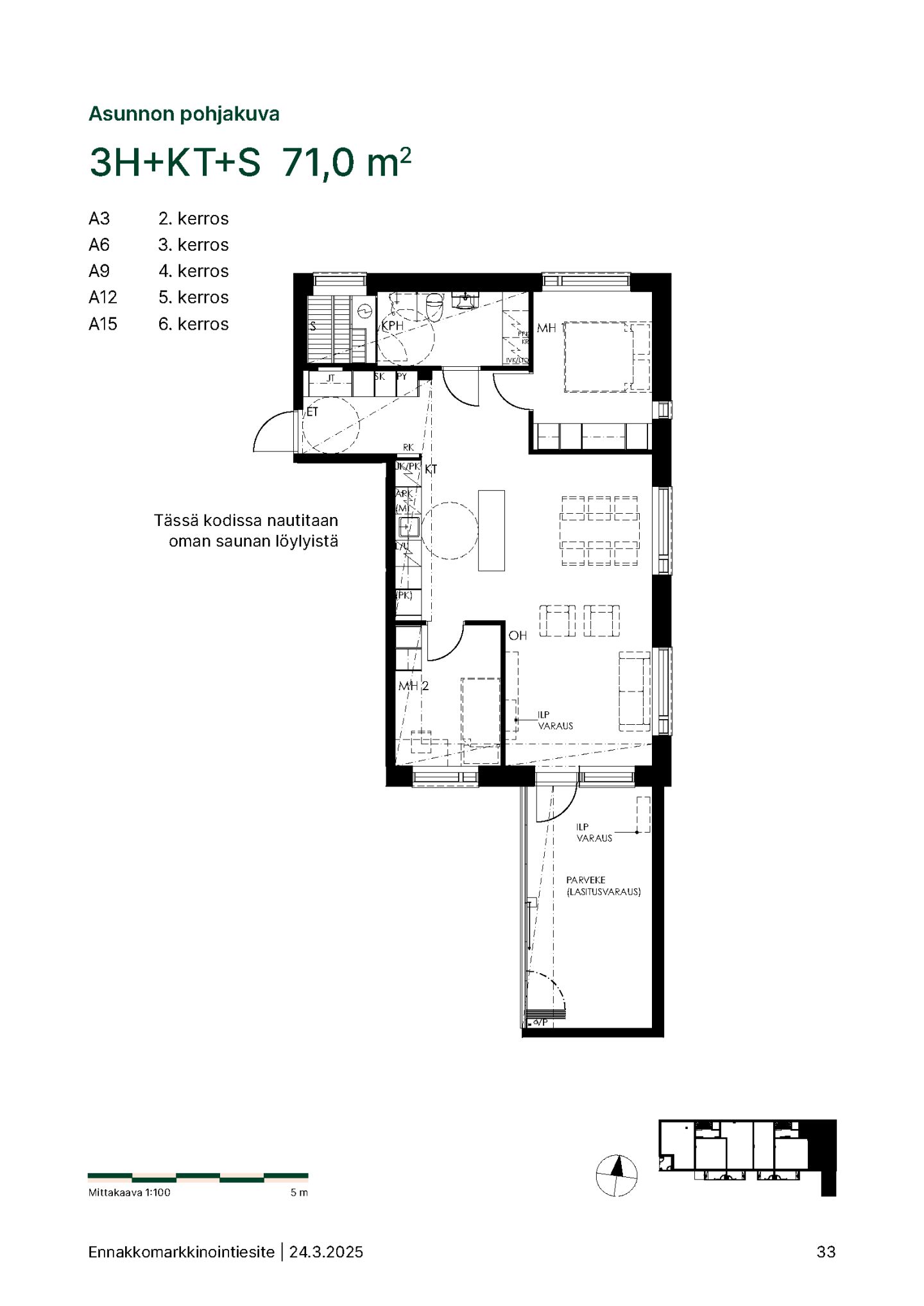 | Huoneistosauna | Kyllä |