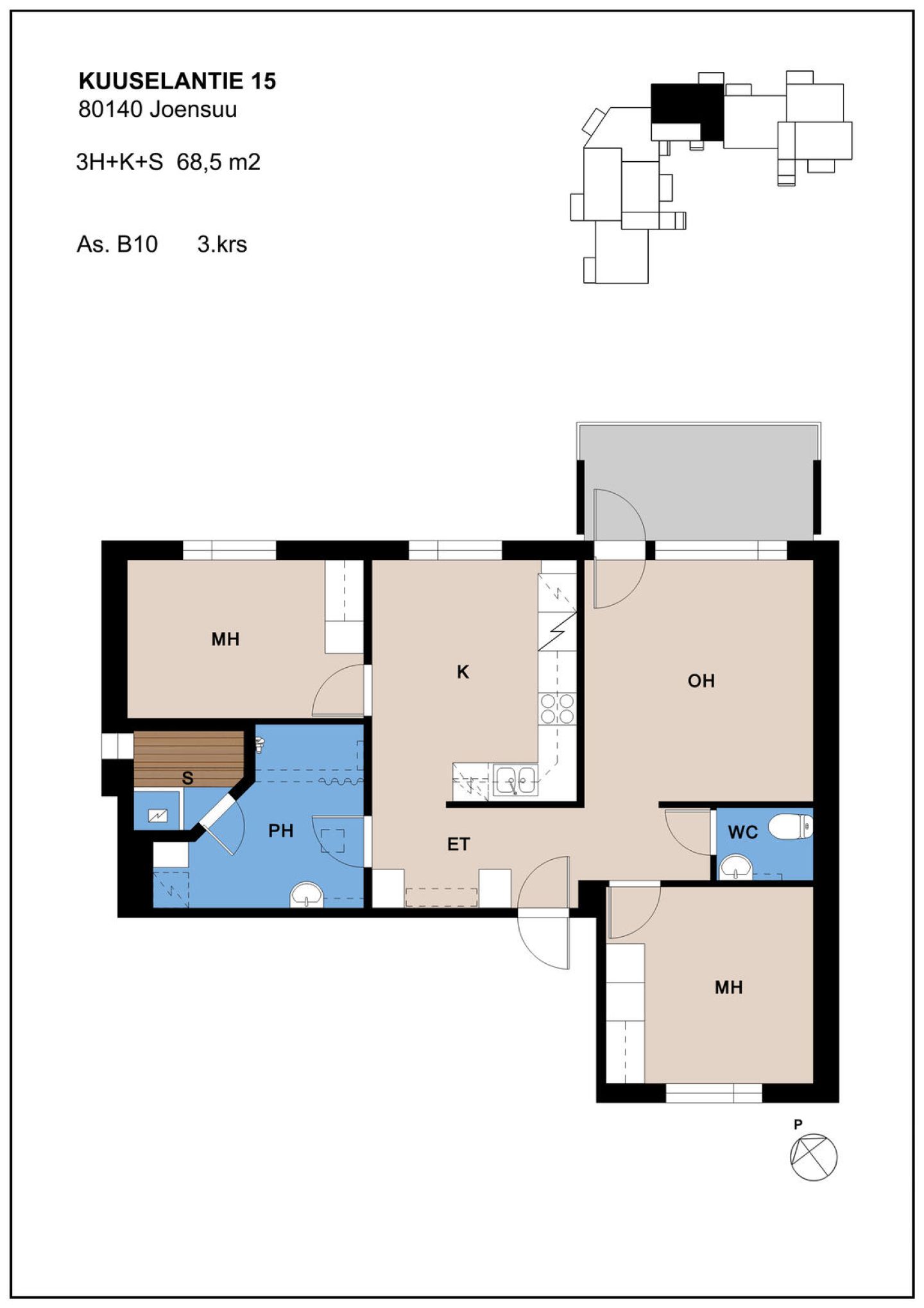| Huoneistotyyppi | 3H+K+S |