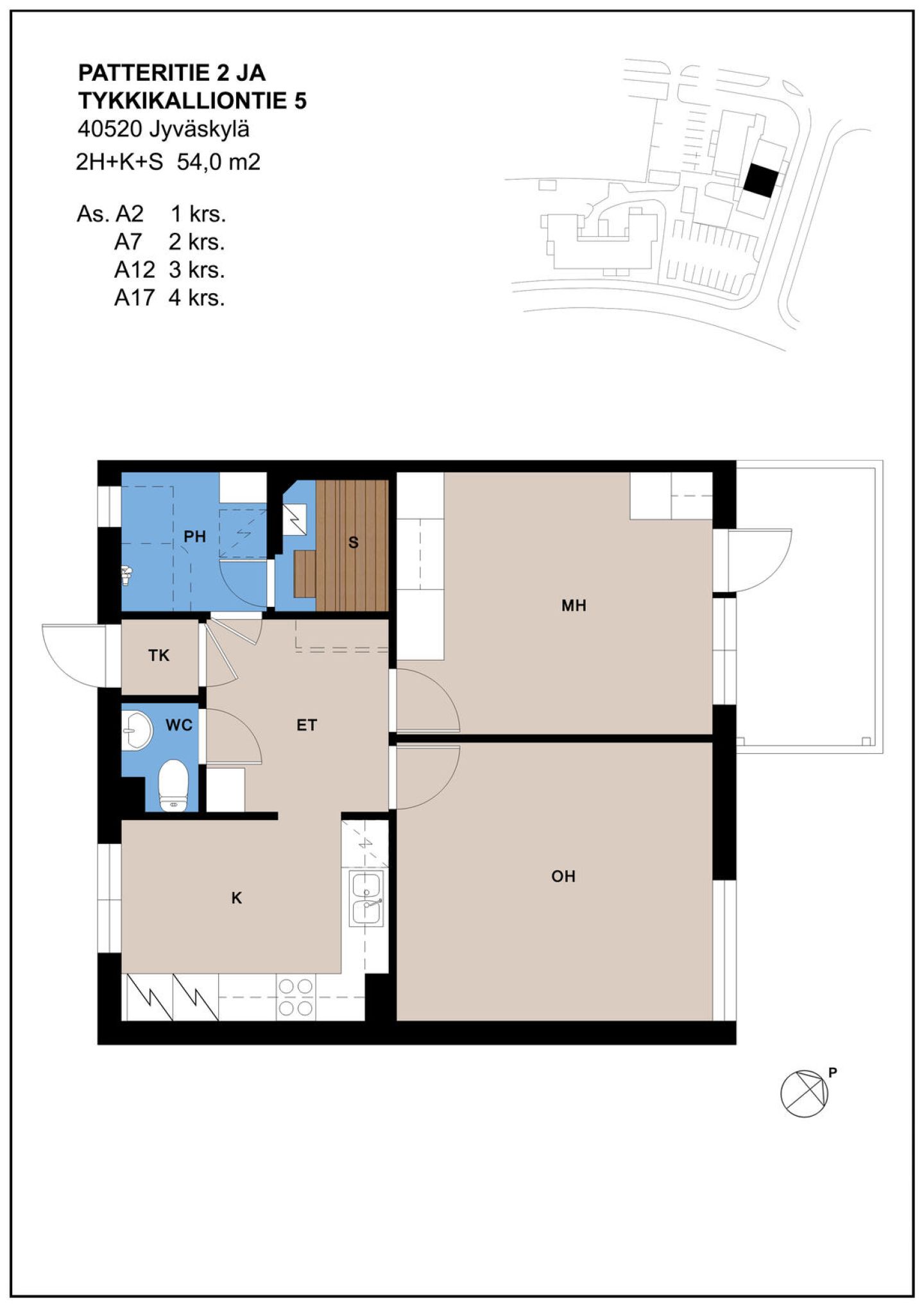 | Huoneistotyyppi | 2H+K+S |