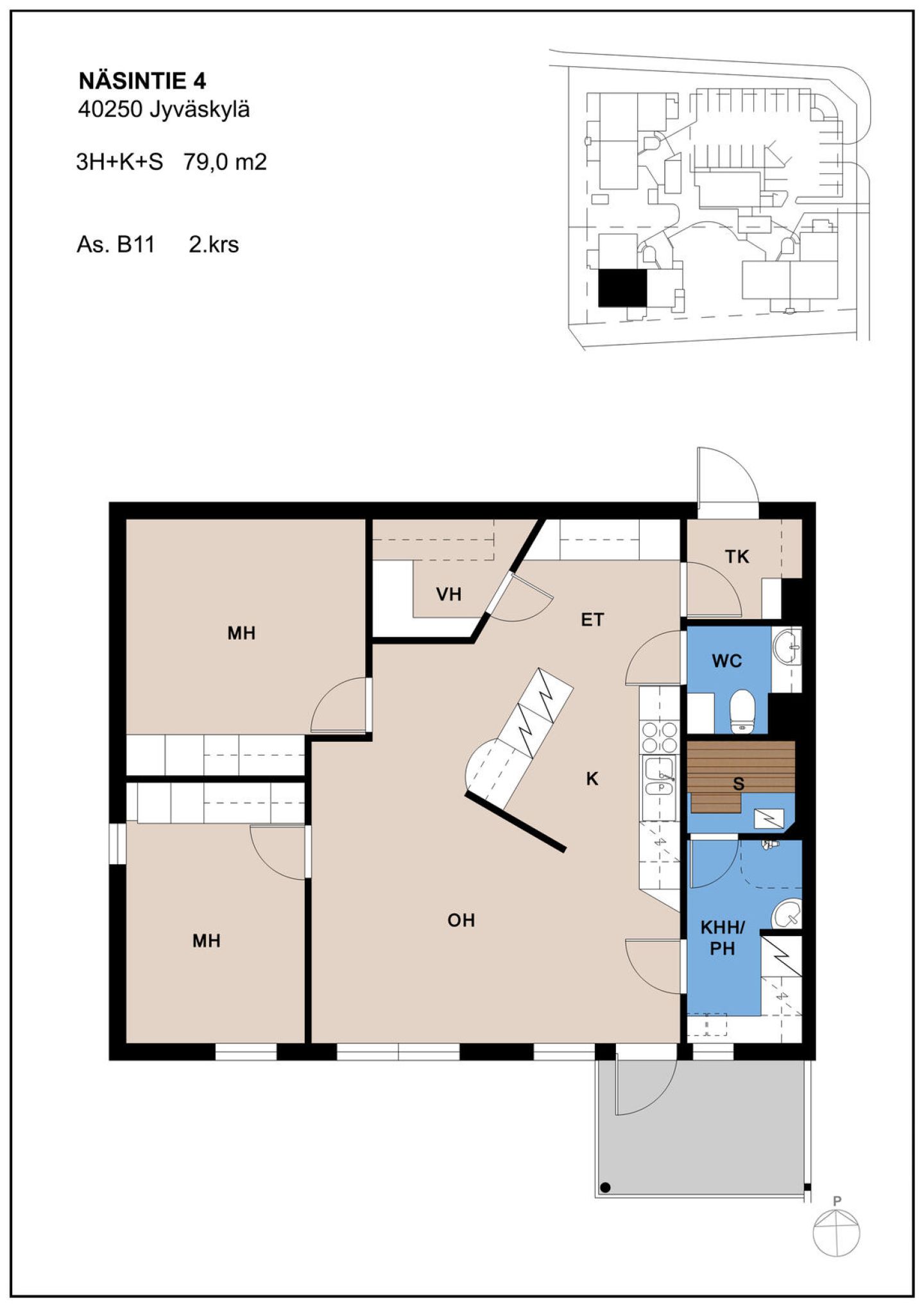 2/2-kerroksen saunallinen kolmio. Asunto on perusparannettu vuonna 2018.