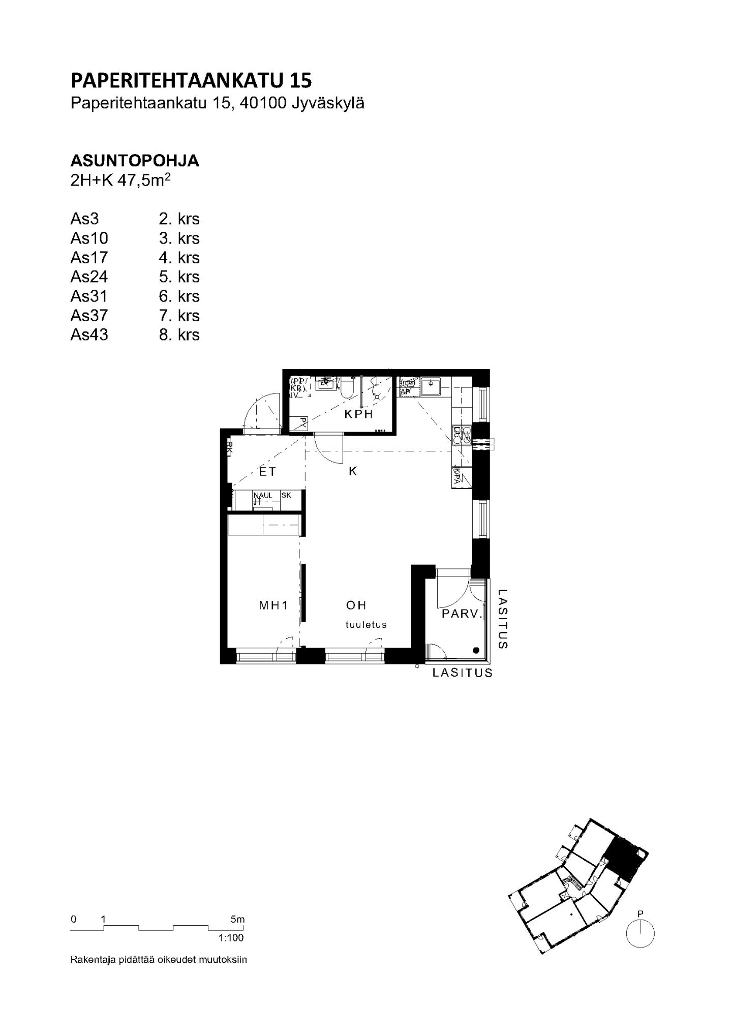 Jyväskylän Paperitehtaankatu 15:n asunnot ovat valtion tukemia vuokra-asuntoja, joissa noudatetaan tulorajoja asukasvalinnassa.