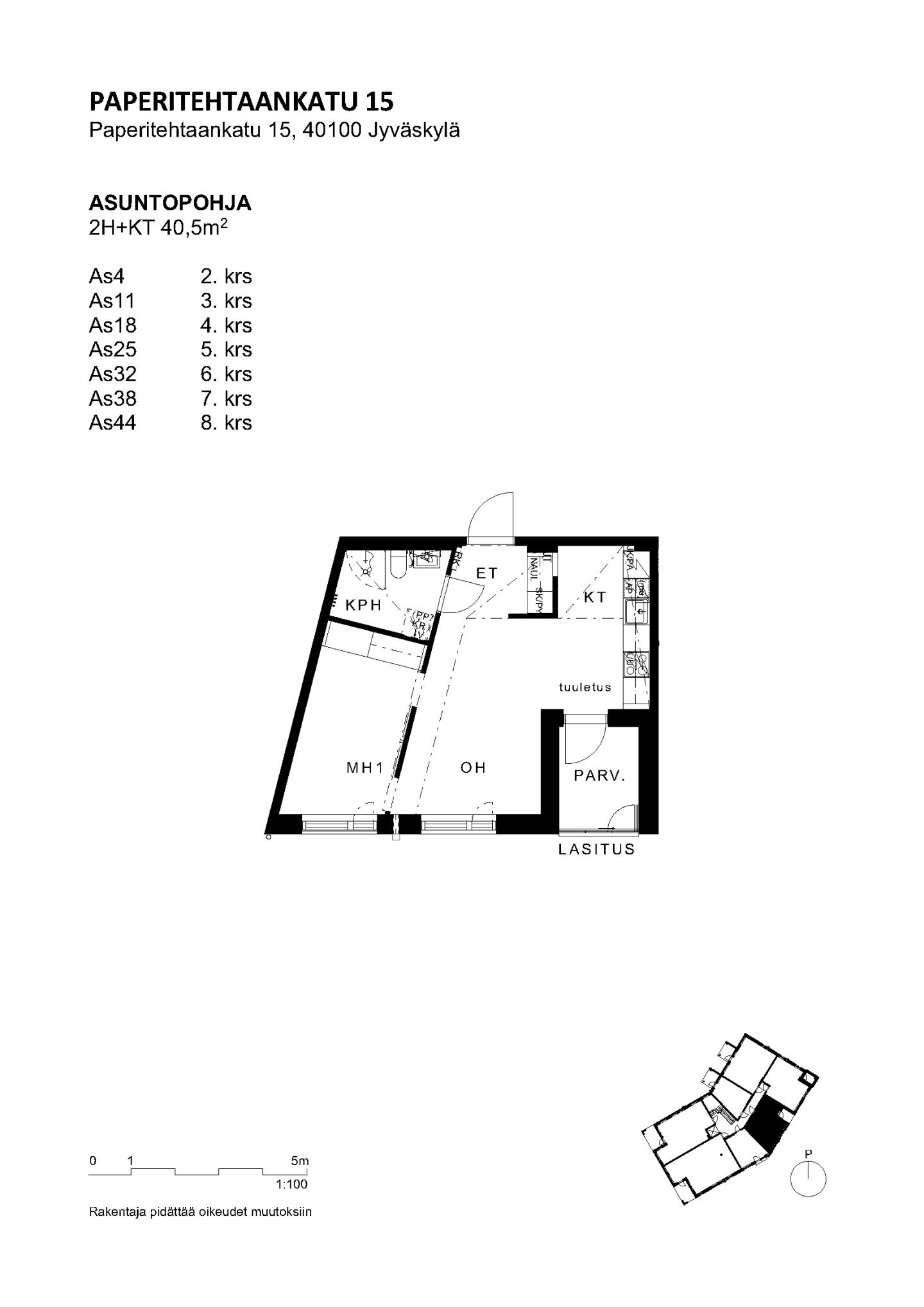 Jyväskylän Paperitehtaankatu 15:n asunnot ovat valtion tukemia vuokra-asuntoja, joissa noudatetaan tulorajoja asukasvalinnassa.