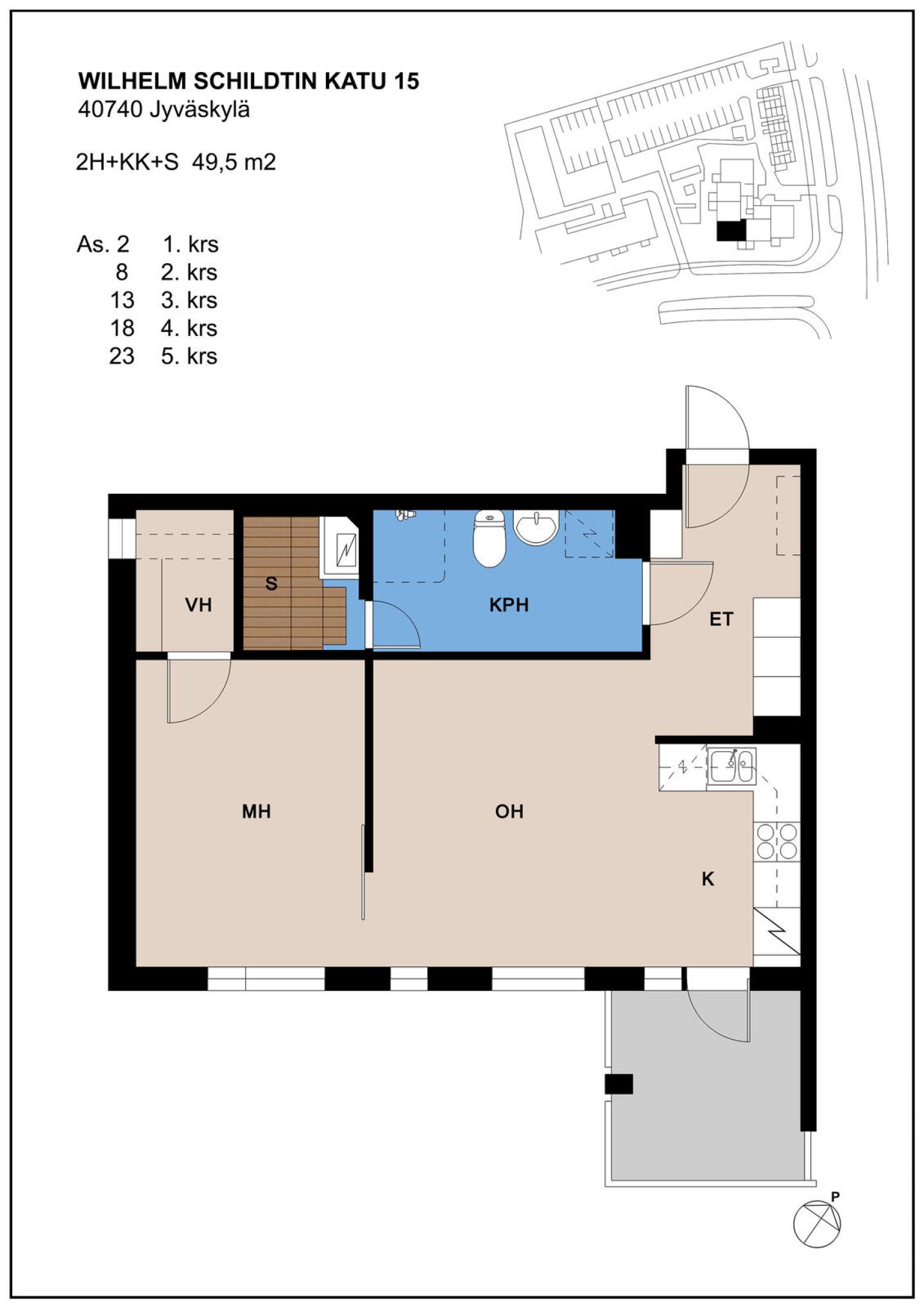 | Huoneistotyyppi | 2H+KK+S |