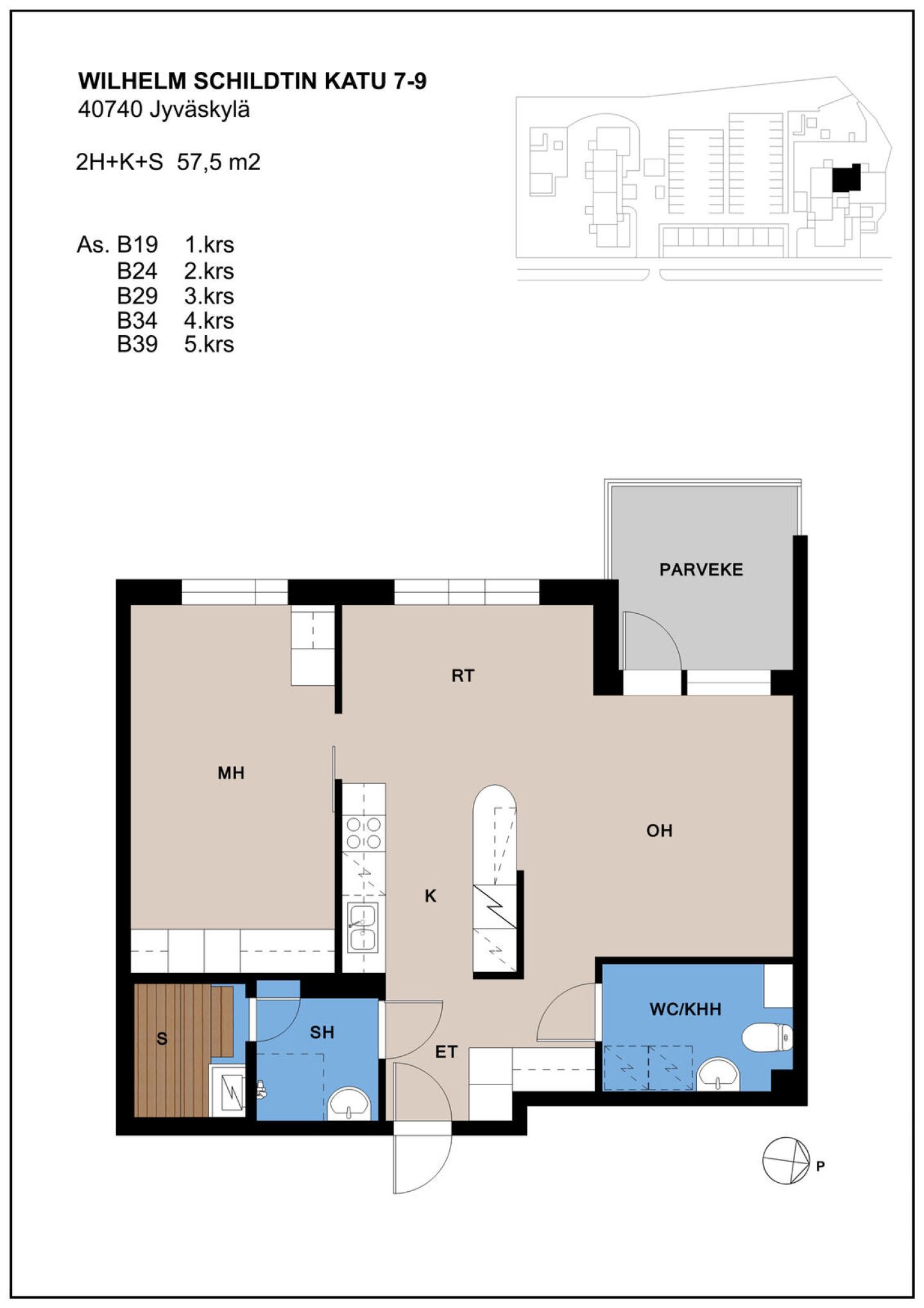 | Huoneistotyyppi | 2H+K+S |