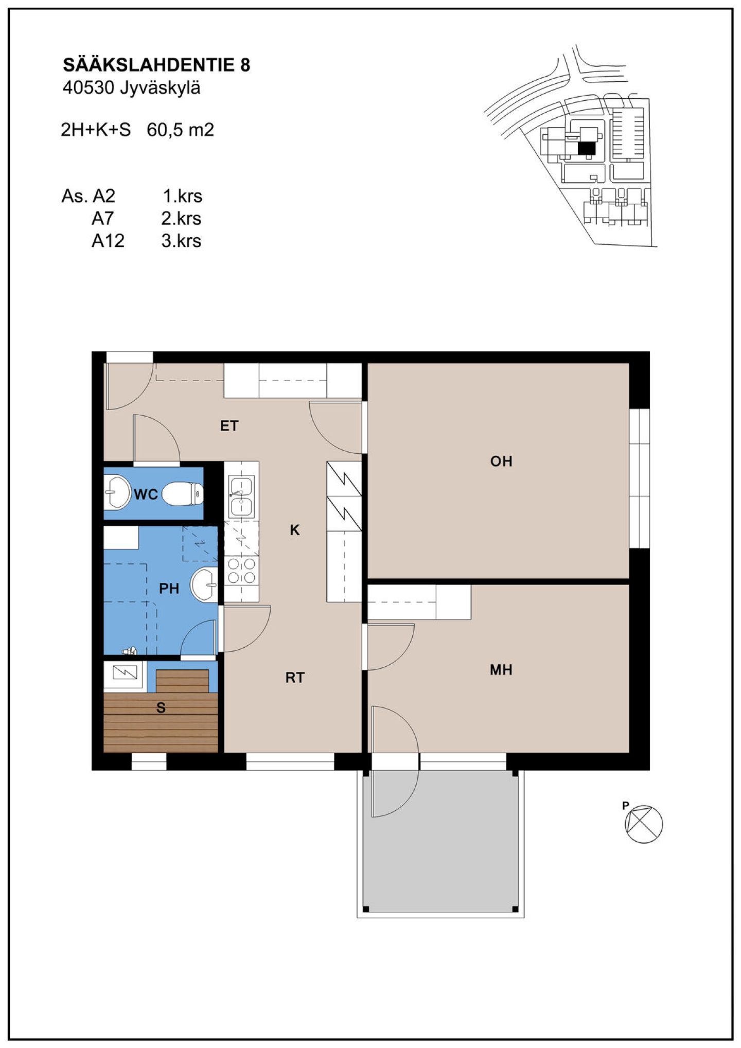 Kohteessa on kolmekerroksinen pienkerrostalo sekä rivitalo, joissa yhteensä 18 asuntoa. Talon asukkailla on käytössään irtaimistovarastot ja ulkoiluvälinevarasto. Pesutupa ja kerhohuone on yhteiskäytössä Sääkslahdentie 6:n kanssa.