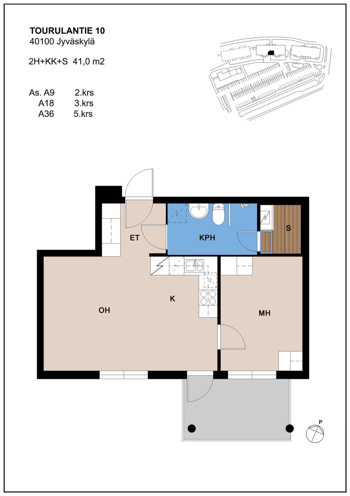 Tässä v. 2006 valmistuneessa kohteessa on yhteensä 40 toimivapohjaista saunallista huoneistoa, joiden koot vaihtelevat 36,5 m² yksiöstä 64 m² kolmioihin. Kaikissa huoneistoissa on parveke tai terassi (maantaso kerros). Huoneistoissa on myös vesikiertoinen lattialämmitys, joten patterit eivät haittaa sisustamista.
