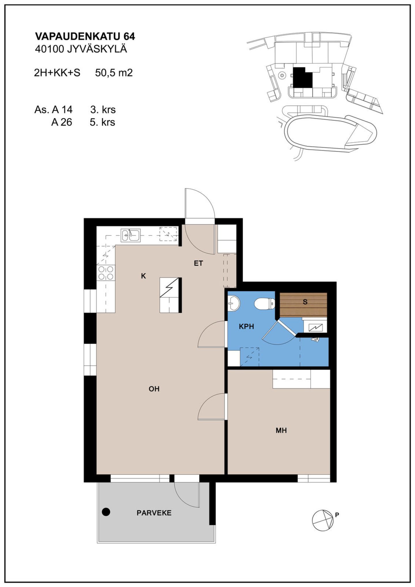 Tässä yksirappuisessa kuusikerroksisessa keskustakohteessa on yhteensä 32 saunallista huoneistoa: huonekoot vaihtelevat näppärästä 40,5 m² kaksiosta 64,50 m² kolmioon. Kaikissa huoneistossa on parveke, joissain asunnoissa on myös ranskalainen parveke. Talon asukkailla on käytössään huoneistokohtaiset varastot, kuivaushuone, ulkoiluvälinevarasto ja lastenvaunuvarasto. Yhteiseltä sisäpihalta löytyy leikkipaikkalapsille. Kohteesta on mahdollisuus saada autohallipaikka, paikkoja on yhteensä 14.