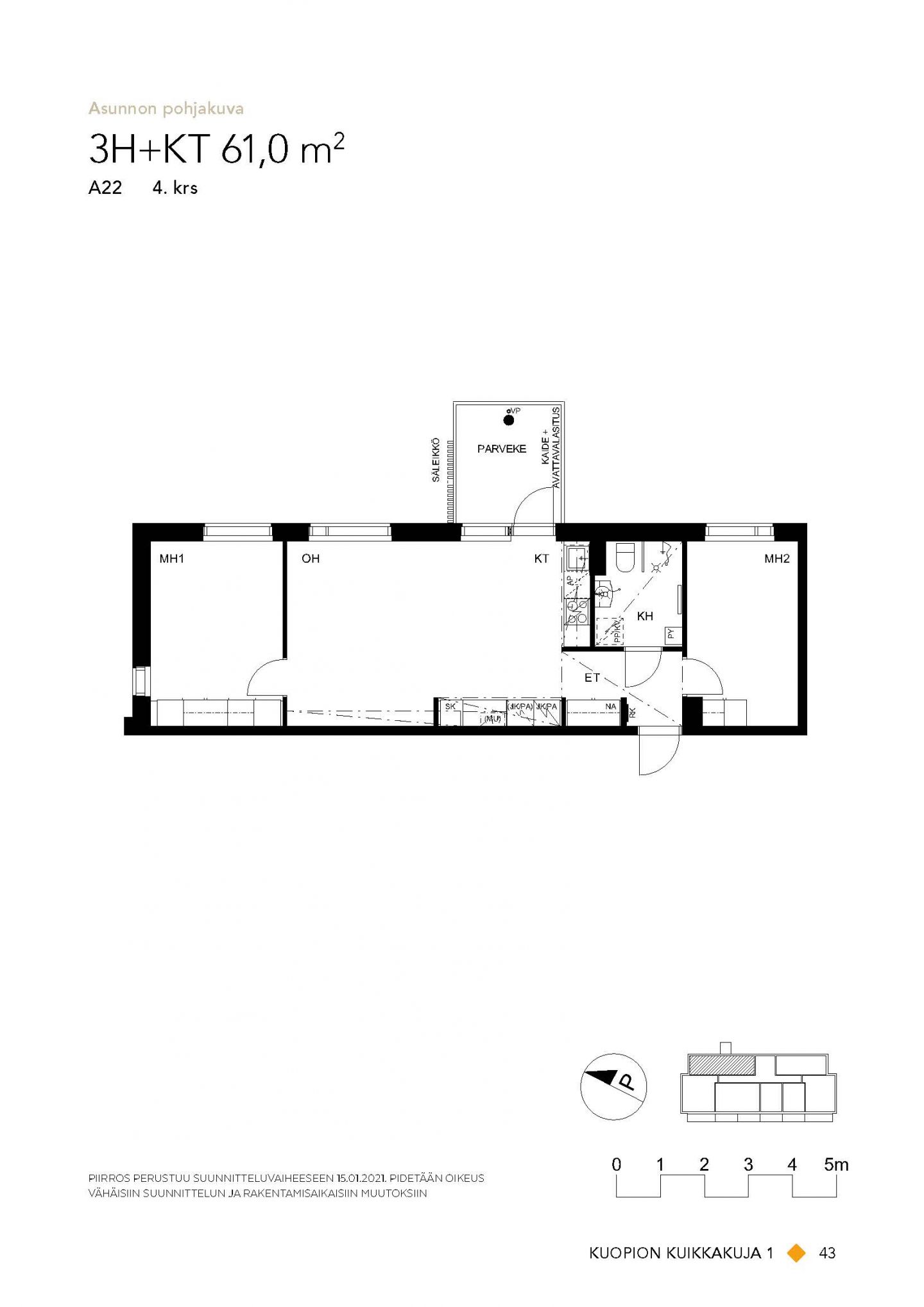 Kohteesta löytyy 35 erilaista huoneistoa näppäristä yksiöistä aina tehokkaisiin perheasuntoihin. Huoneiston varustuksesta löytyy keraaminen liesi, astianpesukone, huoneistojen ikkunoissa on sälekaihtimet sekä kylpyhuoneet on laatoitettu. Lattiamateriaalina on kestävä laminaatti, joka harmoniselta sävyltään sopii sisustukseen kuin sisustukseen. Asuntojen parvekkeet ovat lasitettuja.