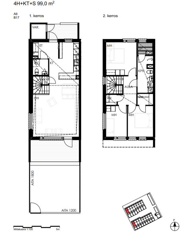 Asuntokohtaiset kylmät varastot ovat asuntojen sisäänkäynnin yhteydessä.