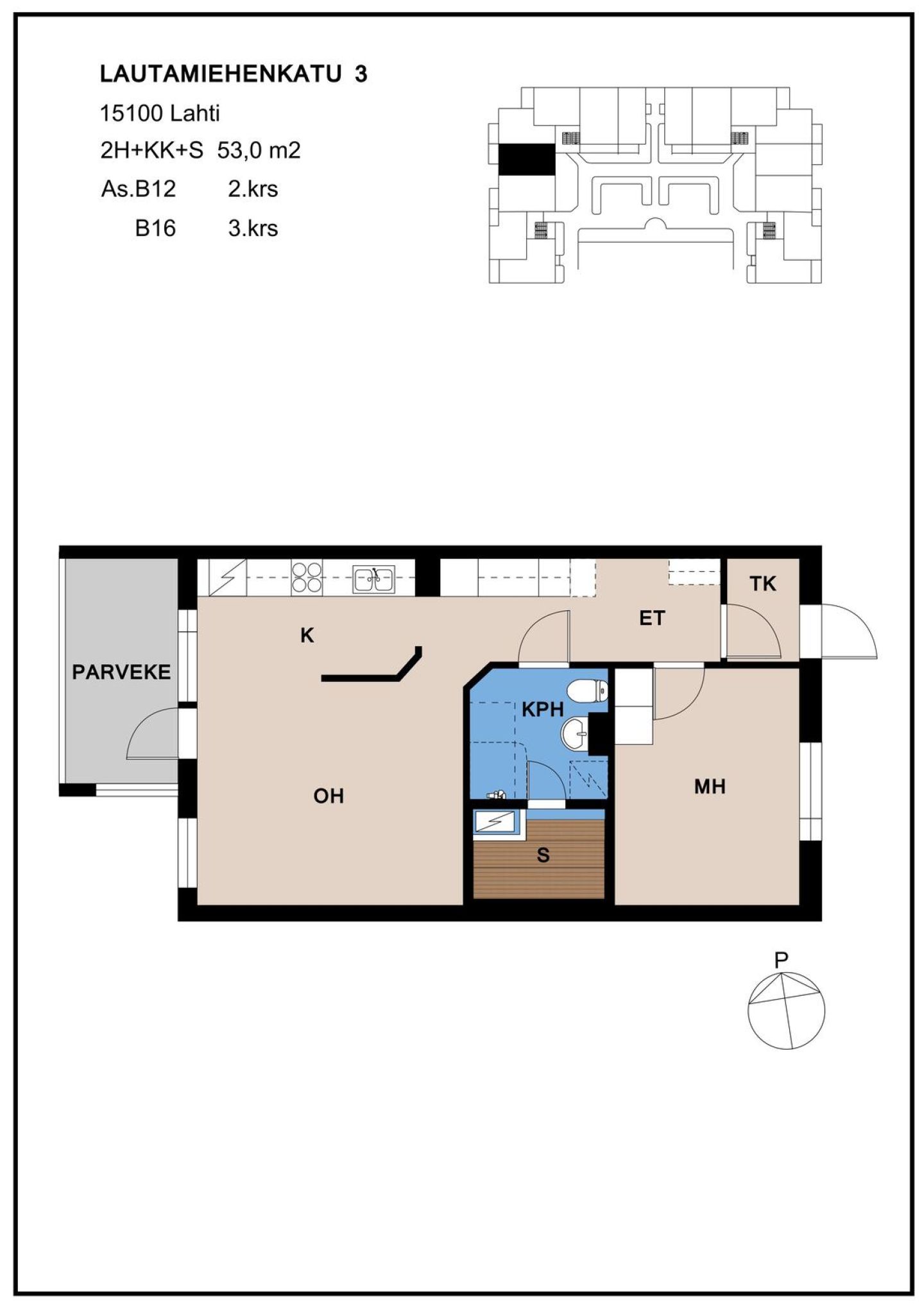 | Huoneistotyyppi | 2H+KK+S |