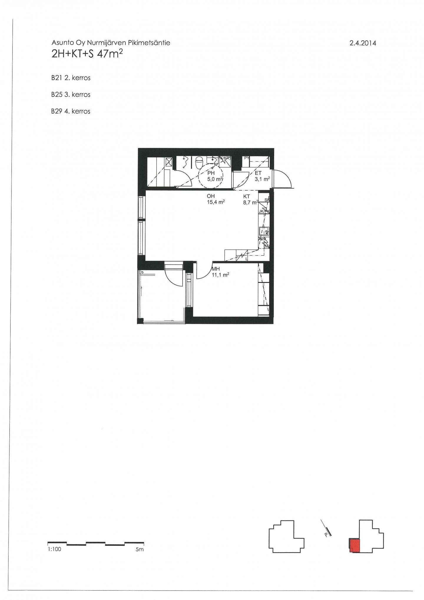 Toiseksi ylimmän, eli kolmannen kerroksen saunallinen kaksio. Parveke lasitettu.