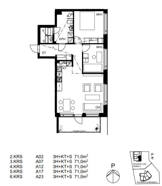 Rajakallionrinne 6 ja 8 kerrostalokohteesta löytyy 53 erikokoista ja toimivapohjaista ratkaisua eri elämäntilanteisiin. Tasokkaasti varustelluista asunnoista löytyy laminaattilattia, kaakeloidut kylpyhuoneet, parvekelasitus, sälekaihtimet, keraaminen liesi sekä astianpesukone. Asumisoikeuskotien materiaaleissa ja väreissä on otettu huomioon nykyajan trendit.