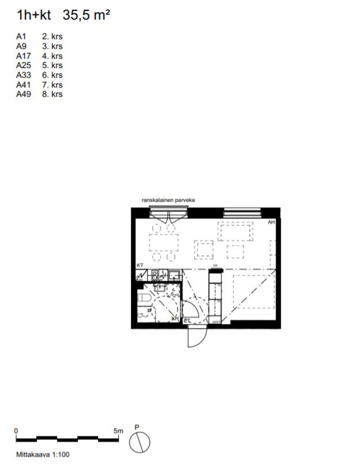 Kohteen yksiöissä ei ole pakastinta/pakastinlokeroa.