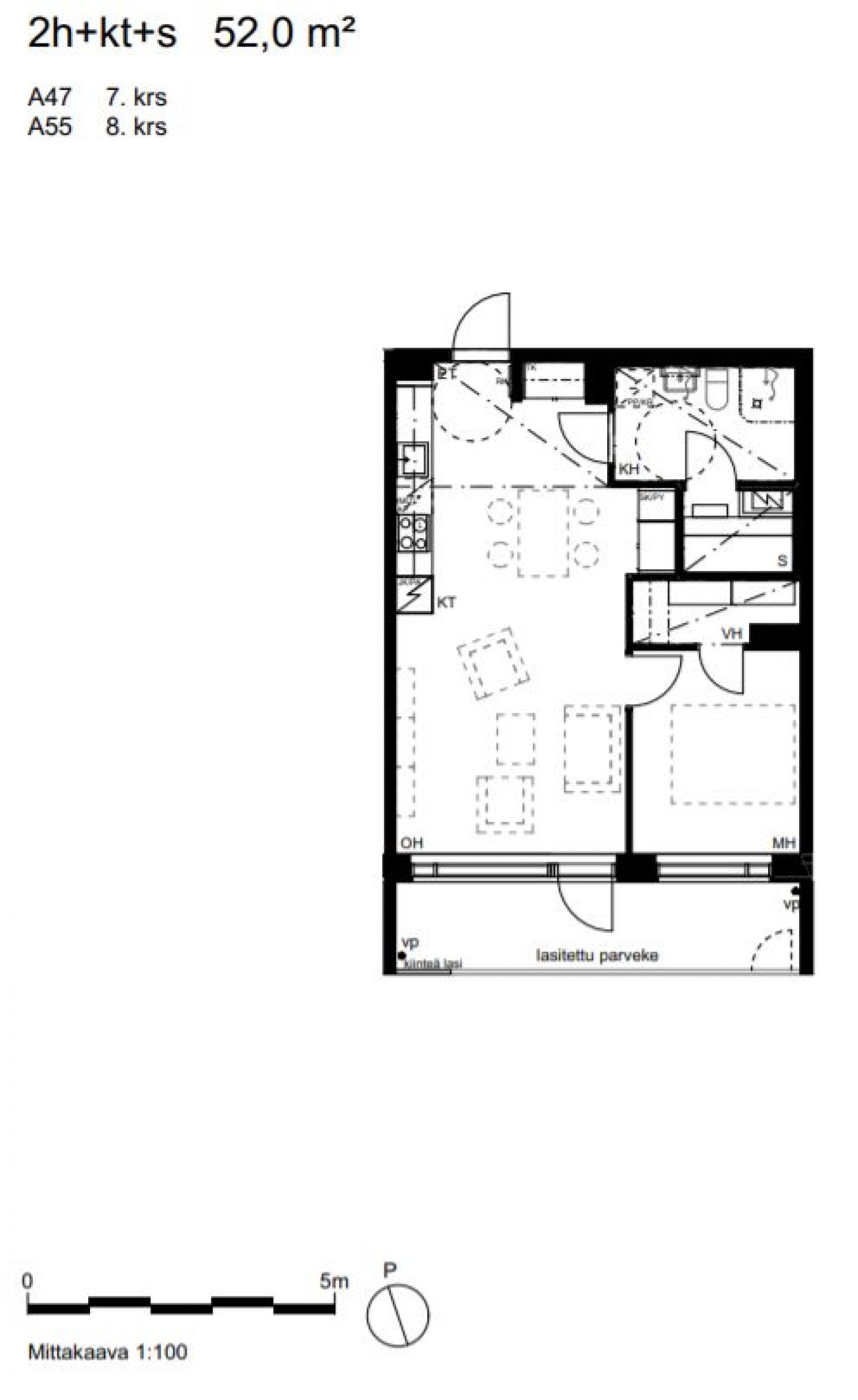 Kohteen yksiöissä ei ole pakastinta/pakastinlokeroa.