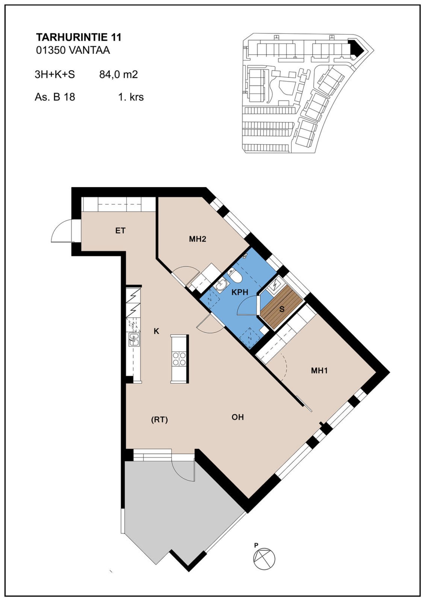 Tyylikäs 1. kerroksen päätyhuoneisto. Asuinhuoneissa laminaattilattiat, kosteat tilat laatoitettu.