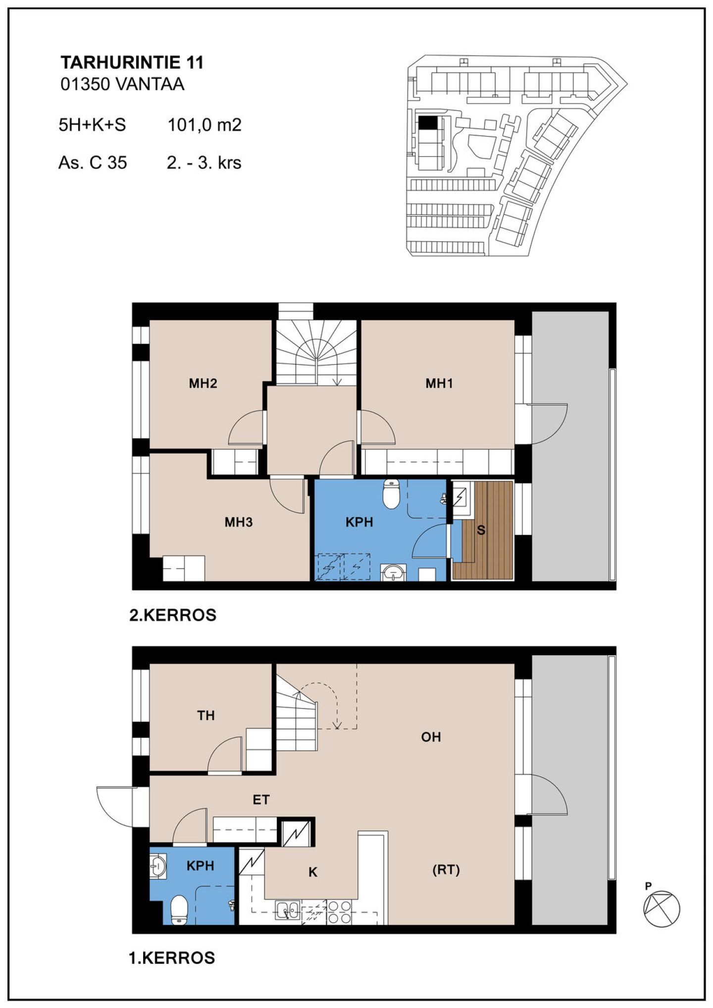 Tyylikäs kahdessa tasossa sijaitseva asunto luhtitalossa. Laminaattilattiat, kylpyhuone- ja wc-tilat laatoitettu. Keittiössä täyskorkeat jää- ja pakastinkaapit, astianpesukone.