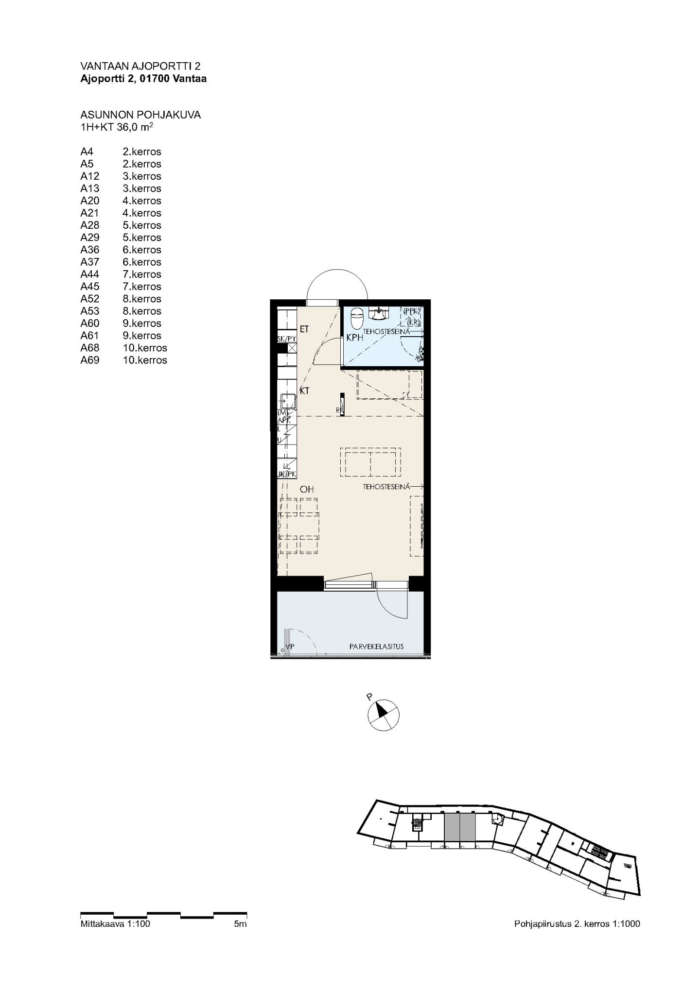 | Asuintilojen pinta-ala | 36,0 m² |