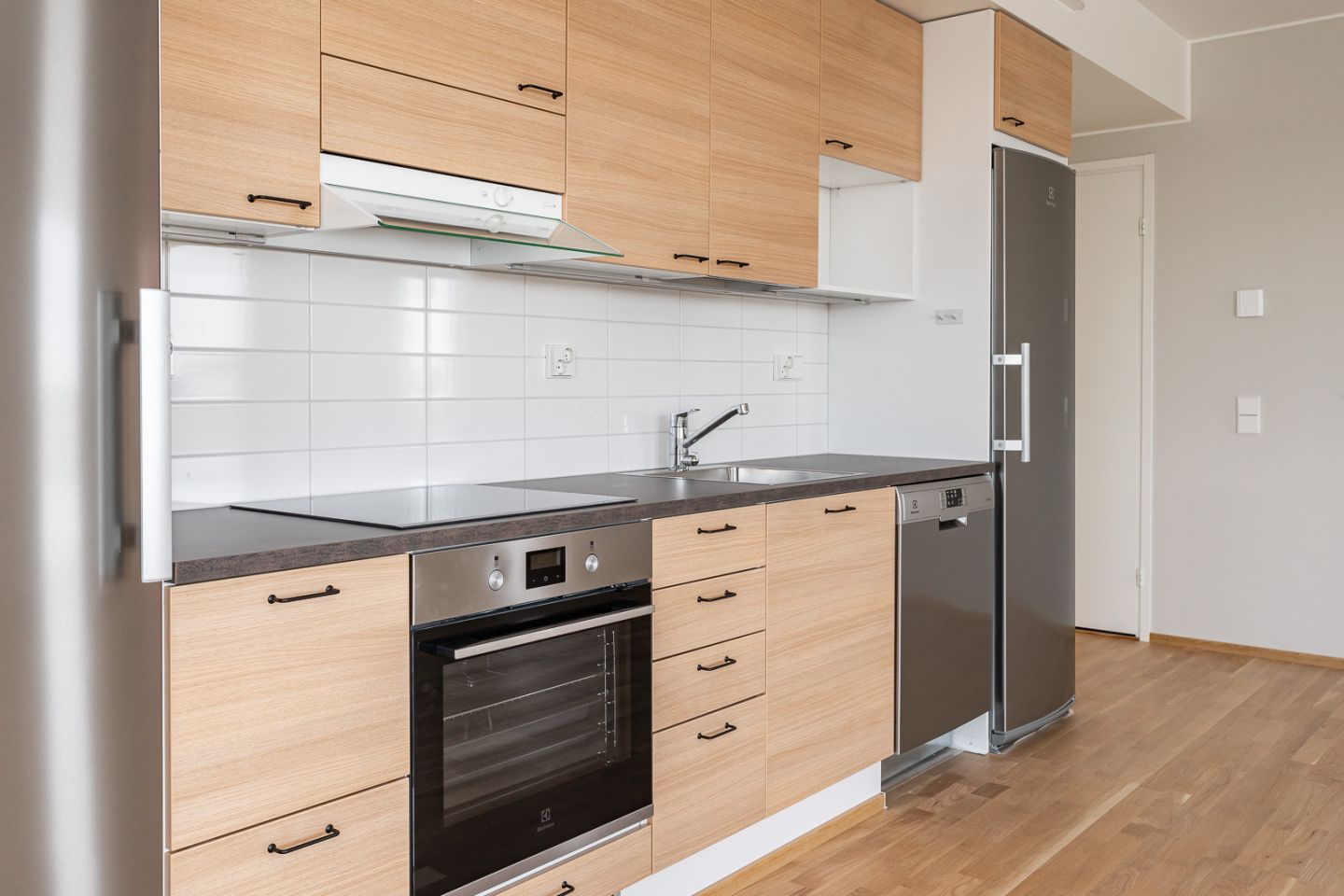 Muutostyönä rakennusvaiheessa asennettu parketti ja vaihdettu kodinkoneet.