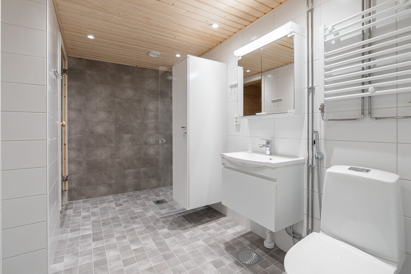 Tämä 3. kerroksen läpitalon kolmio tarjoaa toimivat ja avarat tilat moneen tarpeeseen. Olohuone ja keittiö muodostavat yhtenäisen tilaratkaisun, josta on käynti lasitetulle parvekkeelle. Kaksi makuuhuonetta sijoittuvat erilleen toisistaan, mikä lisää asumisen käytännöllisyyttä, ja suuret ikkunat tuovat luonnonvaloa kotiin. Asunnossa on tilava kylpyhuone ja oma sauna. Monipuolinen koti, joka toimii niin yksin asuvalle kuin pienelle perheelle.