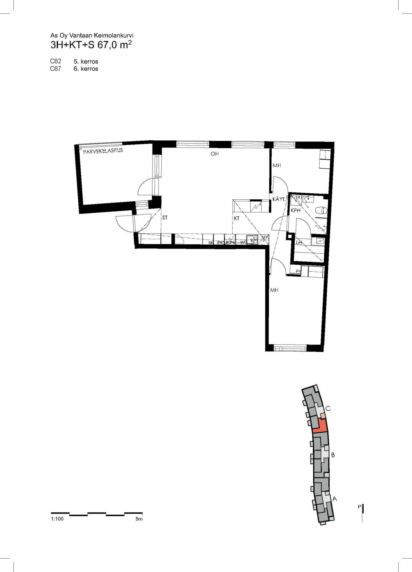| Huoneistotyyppi | 3H+KT+S |