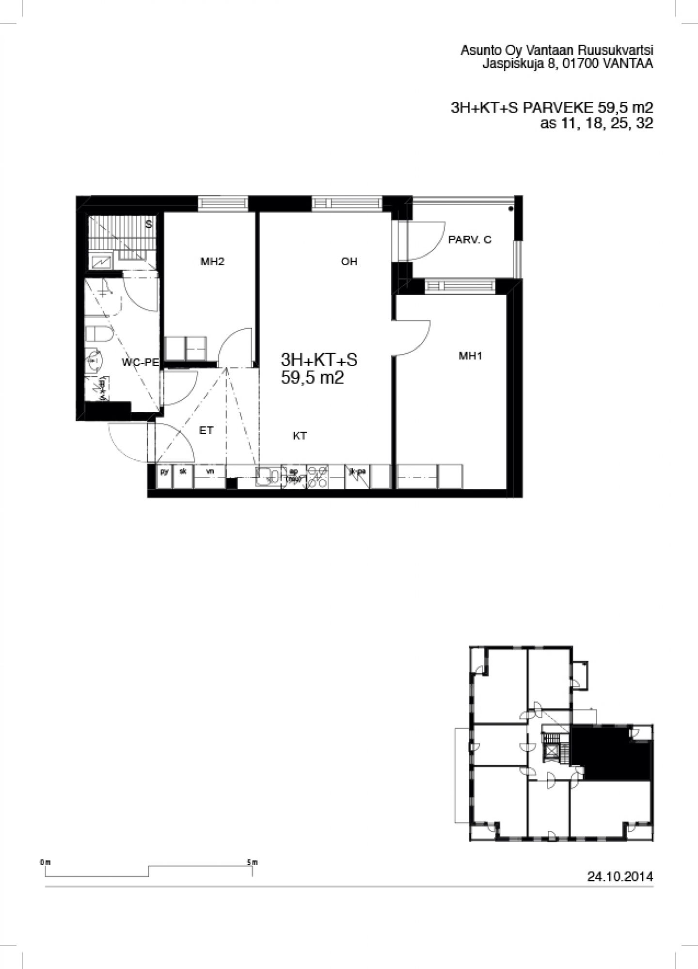 | Huoneistotyyppi | 3H+KT+S |