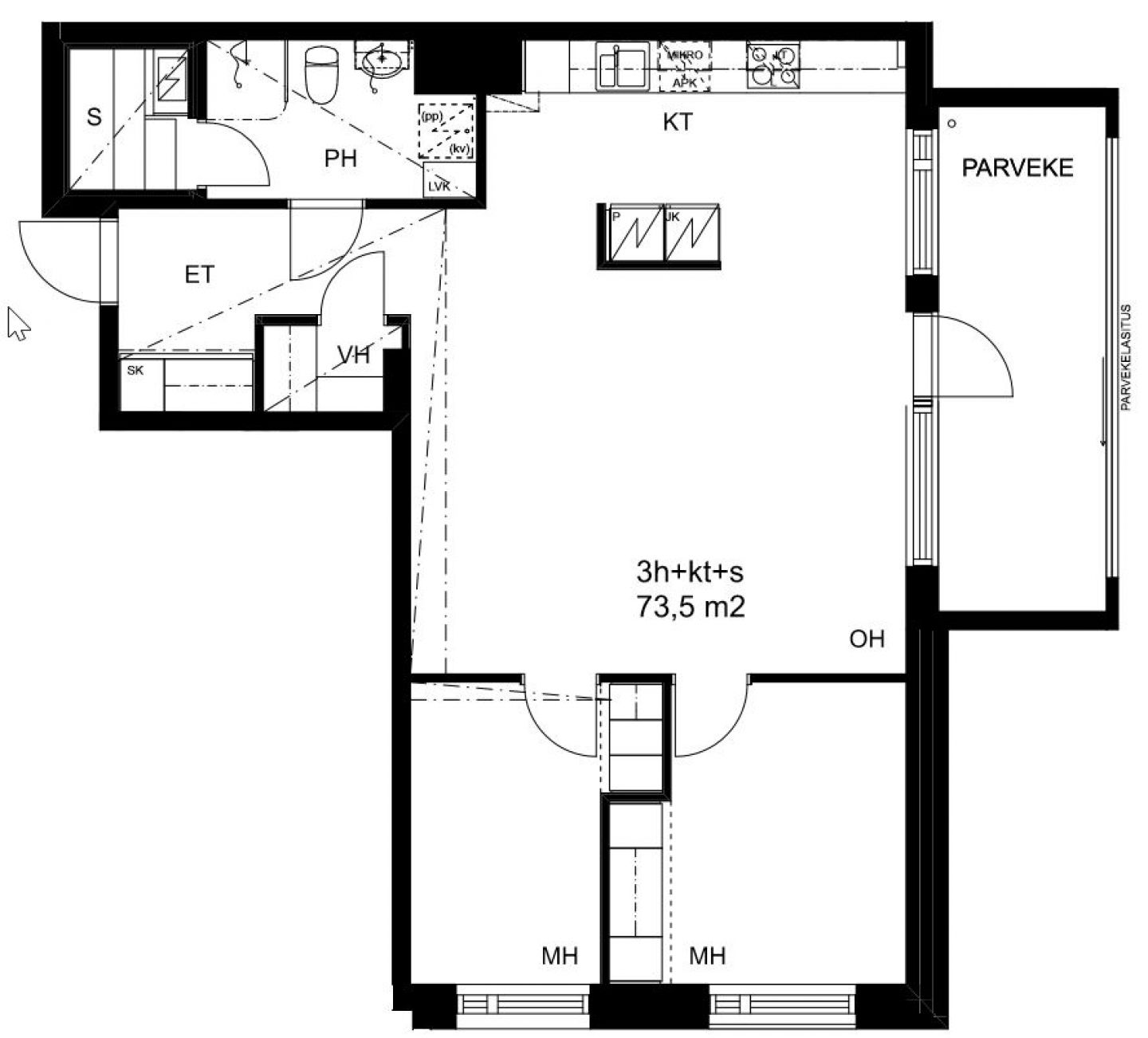 | Huoneistotyyppi | 3H+KT+S |