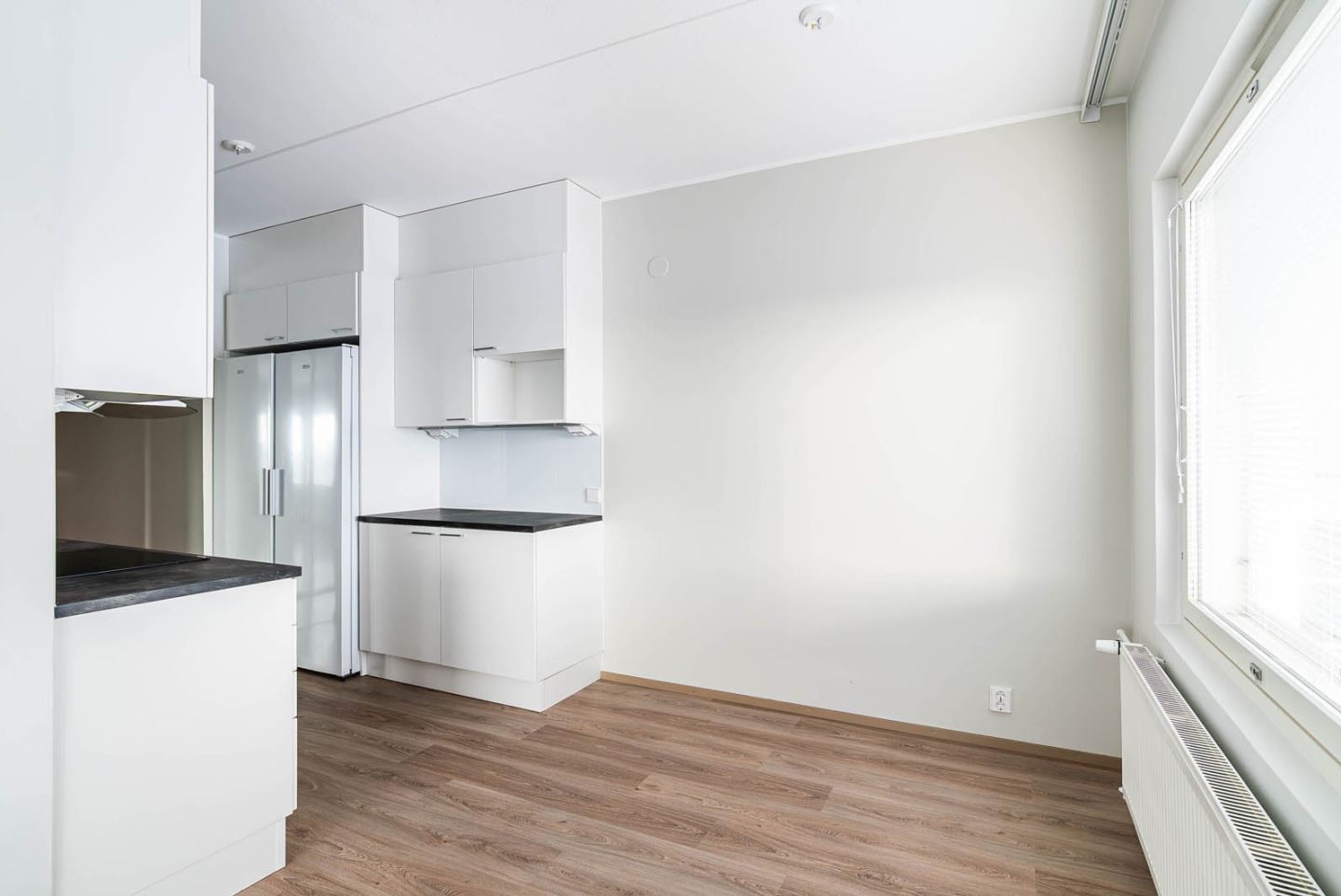 Eteisen peililiukuovet lisäävät säilytystilaa ja pitävät sisääntulon siistinä. Asunnossa on oma sauna, ja kylpyhuoneessa on laatoitetut pinnat. Lasitettu parveke jatkaa oleskelutilaa mukavasti ulkoilmaan, ja korkean sijainnin ansiosta näkymät avautuvat laajalle.