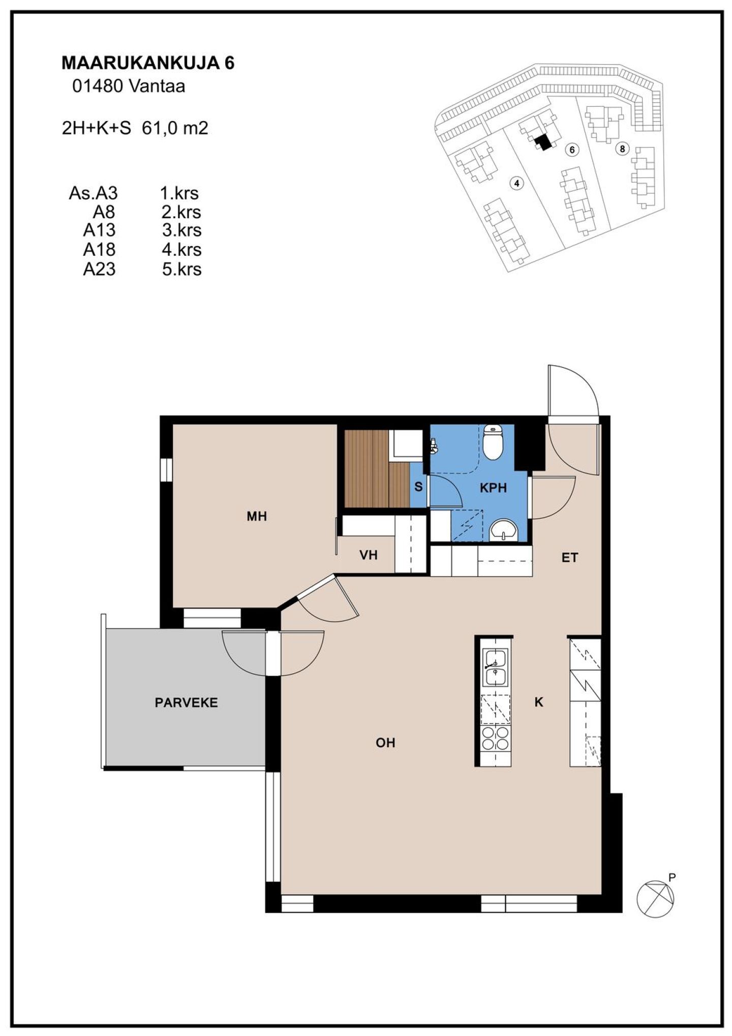 Asunnot ovat valoisia ja pohjaratkaisuiltaan avaria. Asuntoja on toimivista kaksioista aina lapsiperheille sopiviin neliöihin. Kaikissa asunnoissa on oma sauna ja lasitettu parveke tai oma asuntopiha. Hyvin suunnitelluista asunnoista saa helposti sisustettua itselleen mukavan kodin. Maarukankujalla ei ole vilkasta liikennettä, koska se on päättyvä tie.