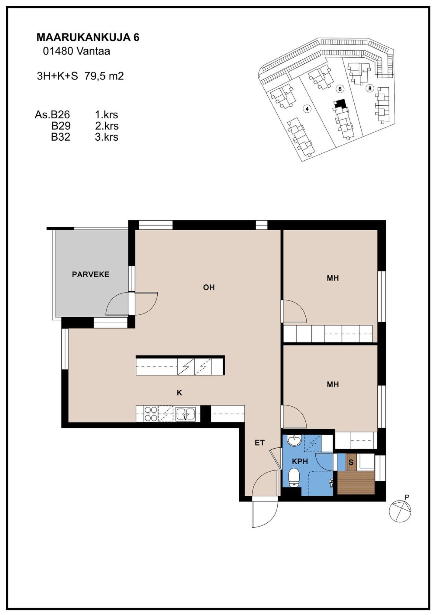Perusparannuksesta v. 2025 valmistunut toisen kerroksen läpitalon huoneisto kolmikerroksisessa talossa. Lasitettu parveke puistomaiselle pihalle päin.