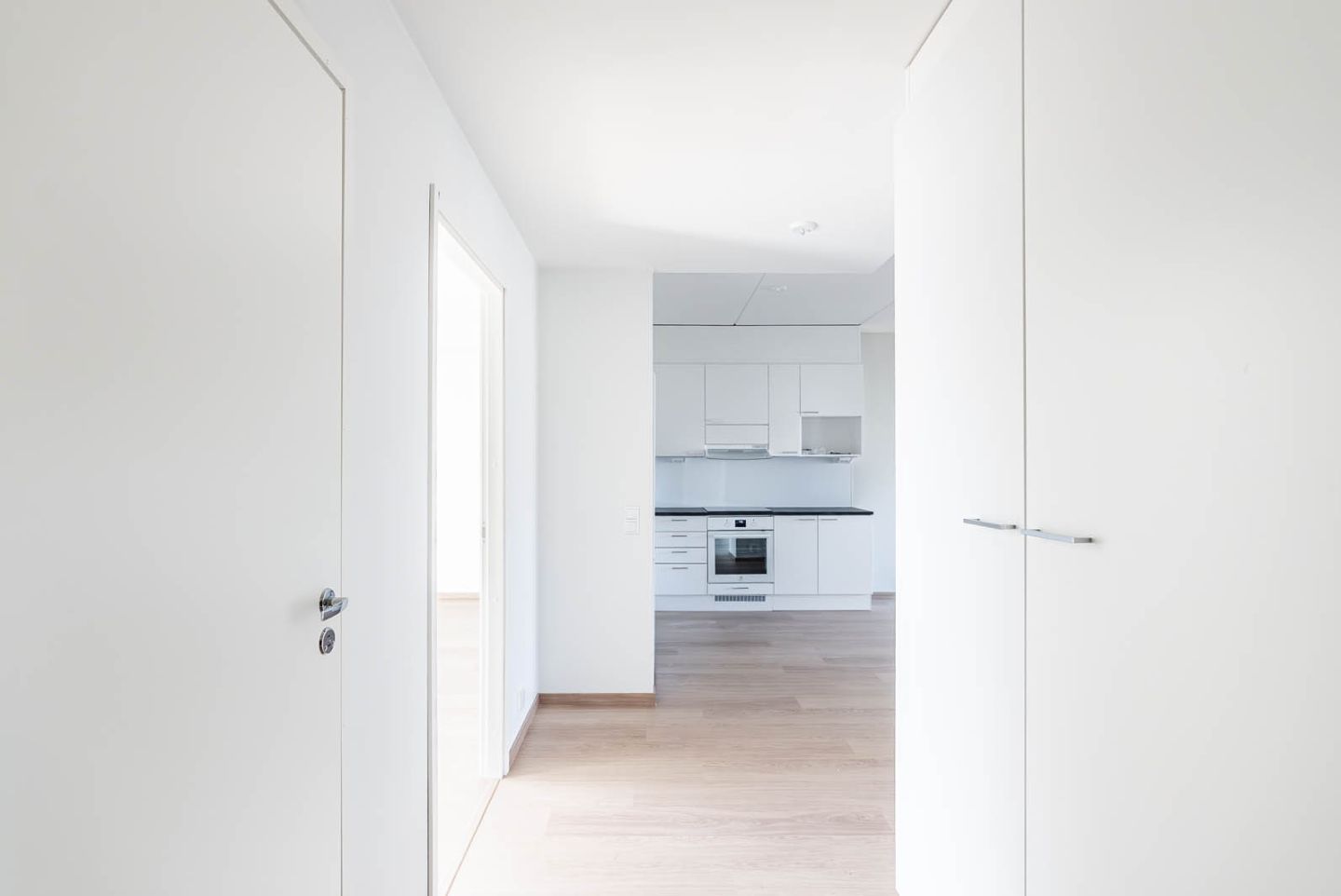 Tämä ylimmän kerroksen läpitalon koti tarjoaa avaran ja yhtenäisen kokonaisuuden, jota vaaleat pinnat ja kauniisti jatkuva lattia korostavat. Keittiö on moderni ja selkeästi jäsennelty, ja oleskelutila avautuu suoraan lasitetulle parvekkeelle, jossa on mukava viettää aikaa ulkoilmassa. Makuuhuoneissa on hyvin kaappitilaa, ja eteistilasta löytyy käytännölliset säilytysratkaisut.