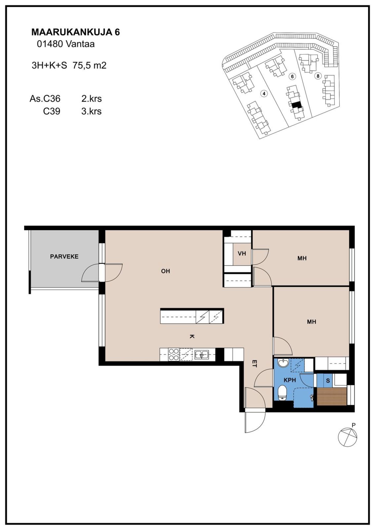 Asunnot ovat valoisia ja pohjaratkaisuiltaan avaria. Asuntoja on toimivista kaksioista aina lapsiperheille sopiviin neliöihin. Kaikissa asunnoissa on oma sauna ja lasitettu parveke tai oma asuntopiha. Hyvin suunnitelluista asunnoista saa helposti sisustettua itselleen mukavan kodin. Maarukankujalla ei ole vilkasta liikennettä, koska se on päättyvä tie.