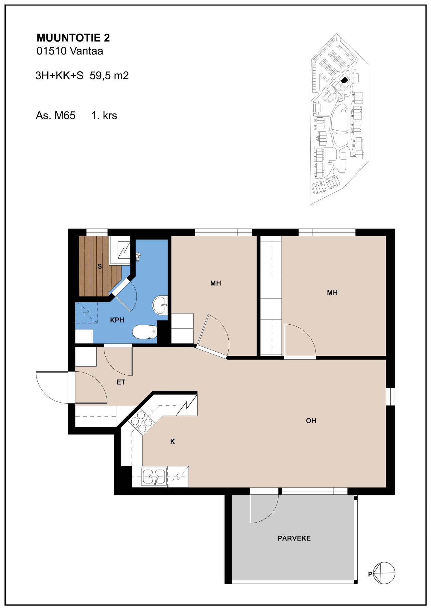 Kaikki asunnot ovat valoisia, siistejä sekä hyvin varusteltuja. Pohjaratkaisuja löytyy toimivista kaksioista aina lapsiperheille sopiviin viiden huoneen asuntoihin. Parvekkeet ja maaterassit ovat viihtyisästi puiden suojassa ja lisäksi taloyhtiöllä on leikkipaikka ja vehreä puistoalue, jossa lapsilla on runsaasti tilaa temmeltää. Kaikissa asunnoissa on oma sauna sekä huoneistokohtainen ulkovarasto.