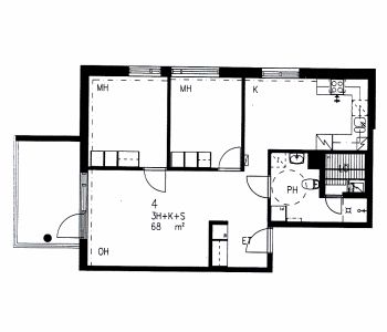 Ensimmäisen kerroksen huoneisto, jossa lasitettu parveke.