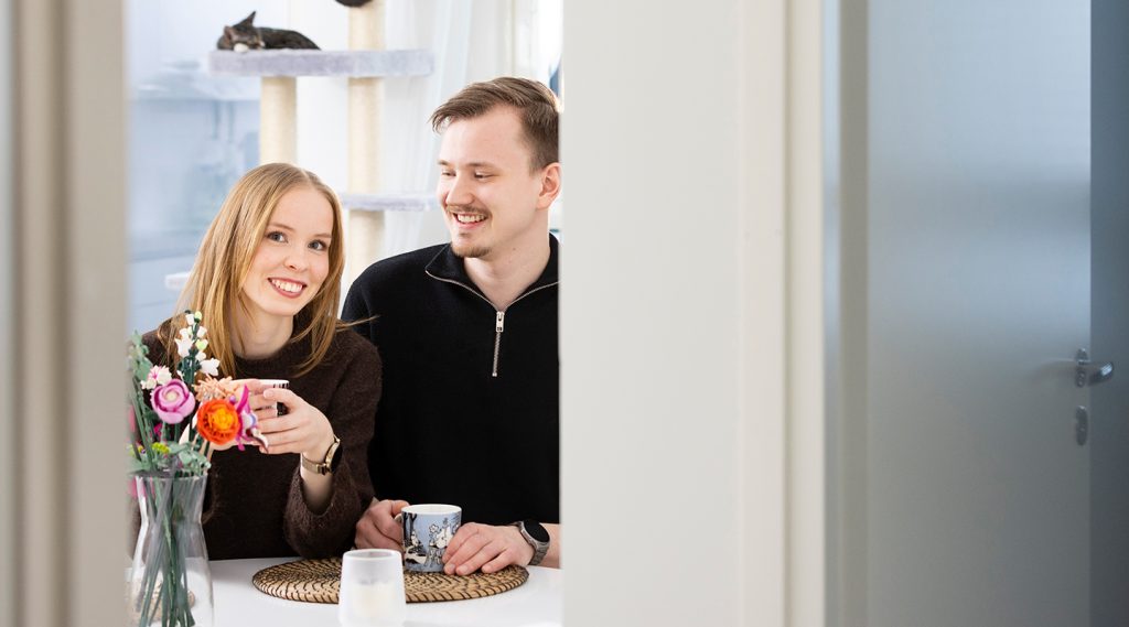 Kaikki on vielä uutta Riku Ikävalkolle, 22, ja Miia Häyriselle, 23. Pariskunta on asunut yhdessä vasta noin kuukauden. Reilun vuoden etäsuhteen jälkeen he muuttivat loppusyksystä yhteiseen kotiin Turun Hovinneidonkadulle.