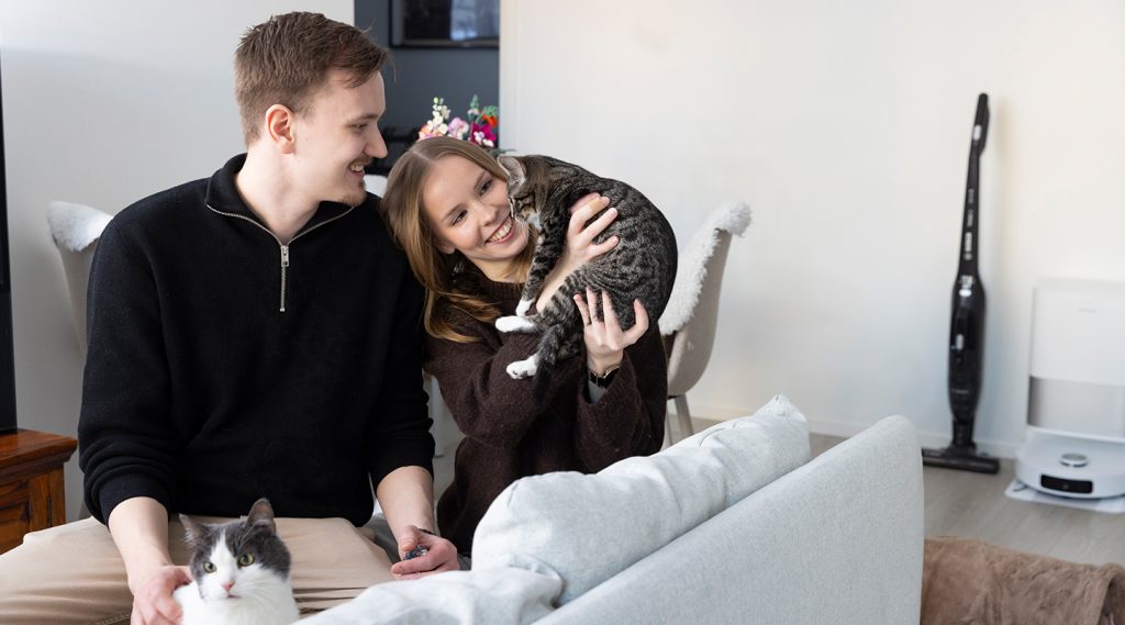 Riku ja Miia halusivat, että asunto olisi uusi, siinä olisi kolme huonetta sekä terassi tai parveke kissojen vapaata ulkoilua varten. Vuokra-asunto tuntui tähän elämäntilanteeseen kätevimmältä vaihtoehdolta, ja vuokranantaja toivotti lemmikit tervetulleiksi, mikä oli kissanystäville elinehto.