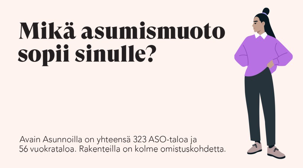 Avain Asunnoilla on yhteensä 323 ASO-taloa ja 56 vuokrataloa. Rakenteilla on kolme omistuskohdetta.